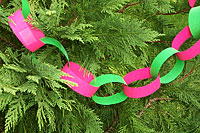 Ask: What are the powers that fetter us in our lives? In order to facilitate discussion and involvement of all members of the group, I had them make paper chains. I provided them with 1 inch by 5 inch strips of colored papers, popular magazines, scissors, tape and felt pens. Each student wrote as many answers to the question as they could think up and found pictures of things that represented temptations to which they knew God did not want them to succumb. Then they turned them into paper chains and joined them together into one long chain that we then taped to our poster. I was surprised at how many youth had never made a paper chain, so I have included a picture here.