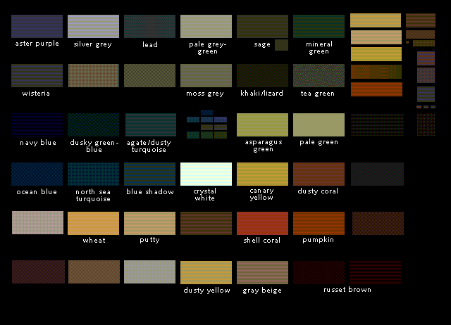 Custom colors, made by hand mixing pixels of browser-safe colors.