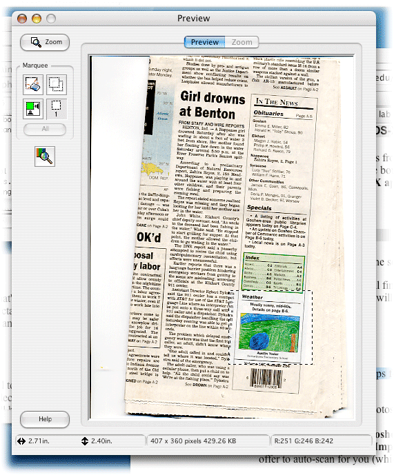 From a scan, in this case, of a newspaper, I took a section of the image, and shrank it down to the approximate size of the tile I'd like to create... here about 150 x 150 pixels.